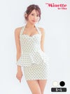 キャバドレス myMinette マイミネット ホルターネック ワンカラー ドット柄 バストハートカット 背中魅せ ペプラム タイトミニドレス