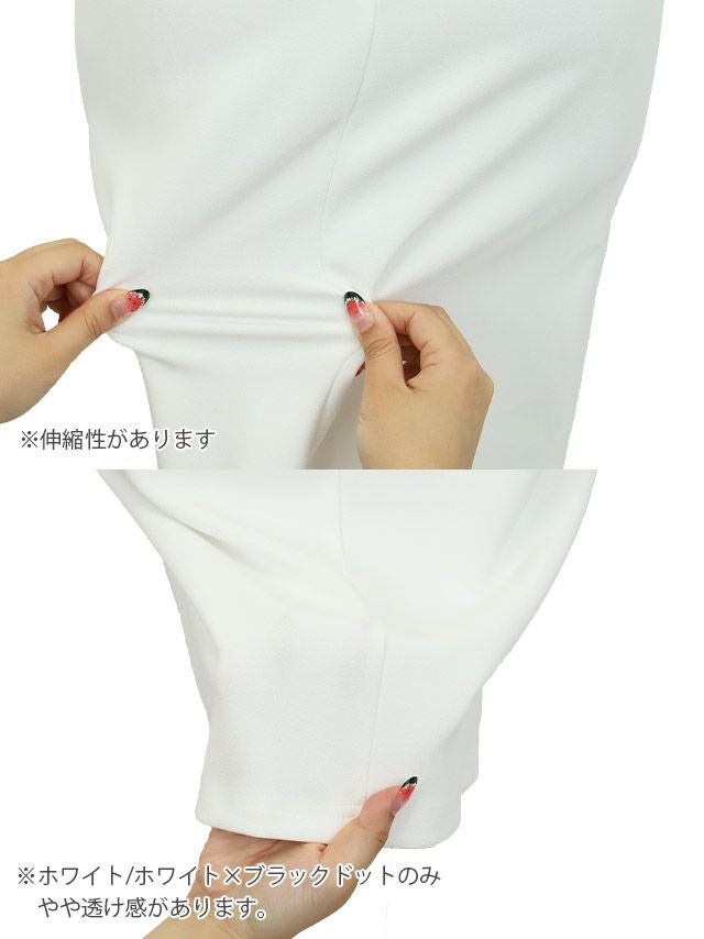 フリル袖ドット柄ストレッチタイト膝丈ドレスのメイン画像