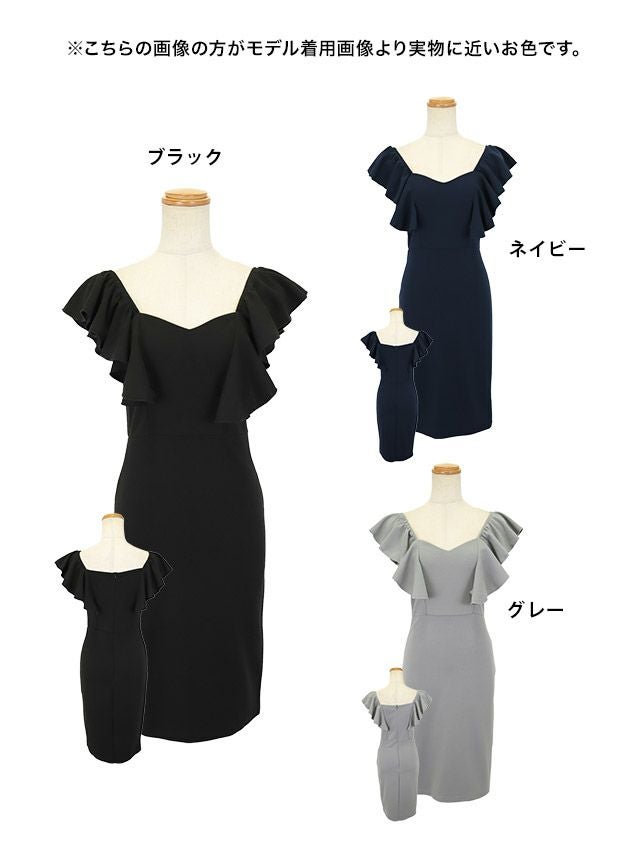 3. 安い タイト膝丈ドレス ホステス オフショルダー 大きいサイズ シンプル 大人 ノースリーブ ストレッチ ブラジャーのまま 2way (向葵まる着用)
