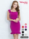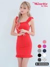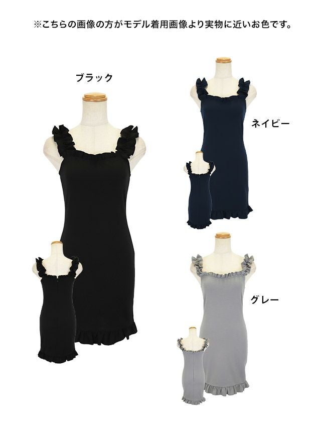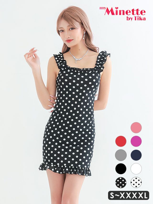 ドット柄フリルノースリーブストレッチタイトミニドレス