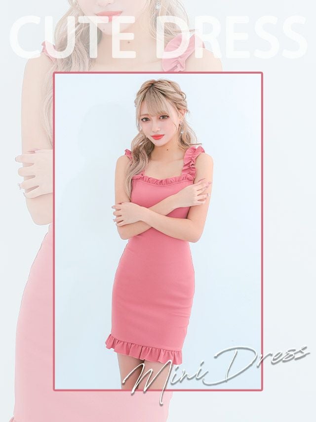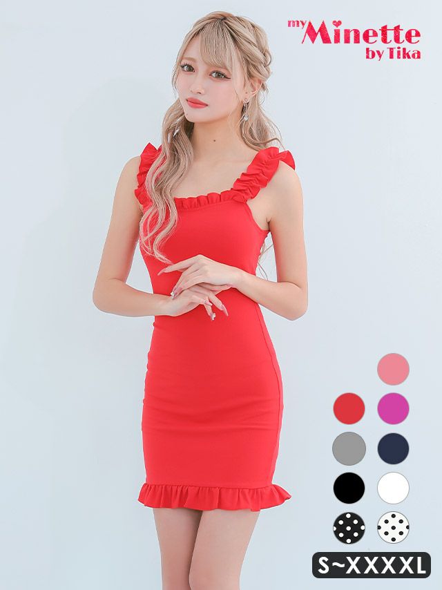 フリルが女の子らしさをプラス♪ [SUPER SALE] 安い タイトミニドレス ホステス 大きいサイズ シンプル 大人 ノースリーブ ストレッチ ブラジャーのまま (なぎ着用)