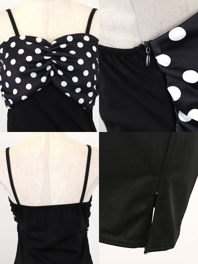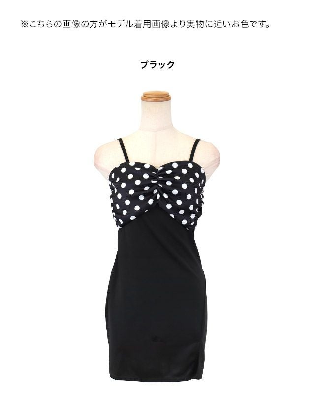 キャミソール ドット柄 ハイウエスト切替 ワンカラー 背中魅せ タイトミニドレスのカラバリ画像