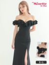 5. [ゲリラセール] 安い Aラインロングドレス ホステス 谷間 オフショルダー シンプル 大人 上品 背中魅せ マーメイド スリットくびれ透け (林姫奈妙着用)