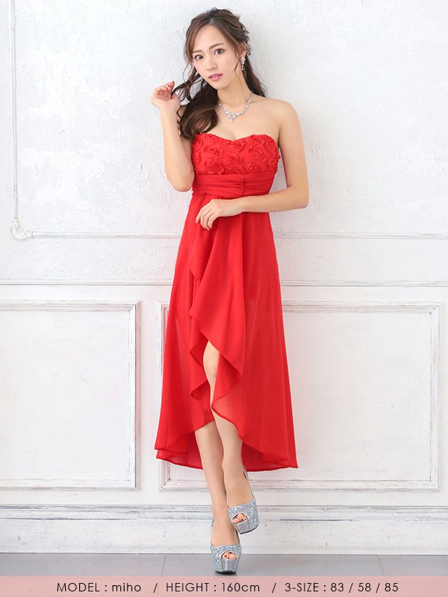4. ウエスト切替フラワーモチーフタイトミニロングテールドレス (ゆんころ着用)