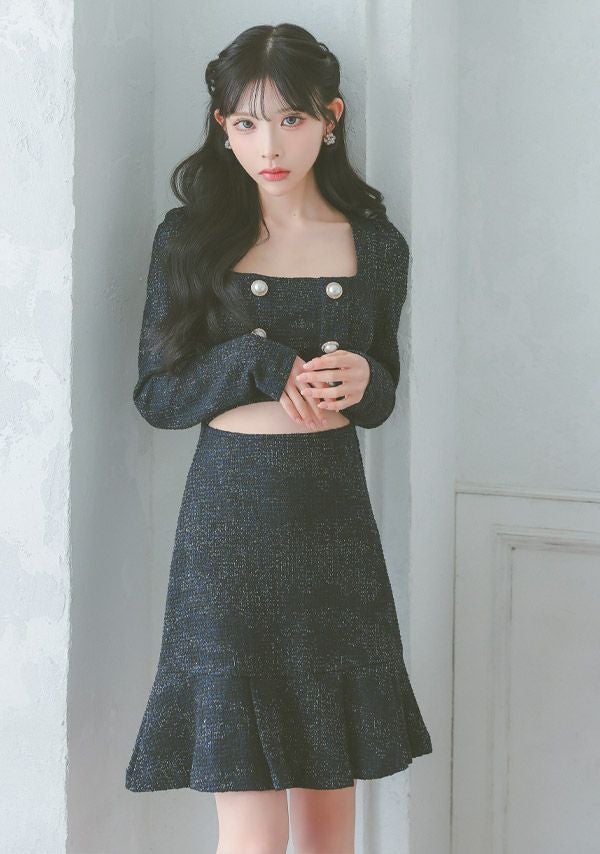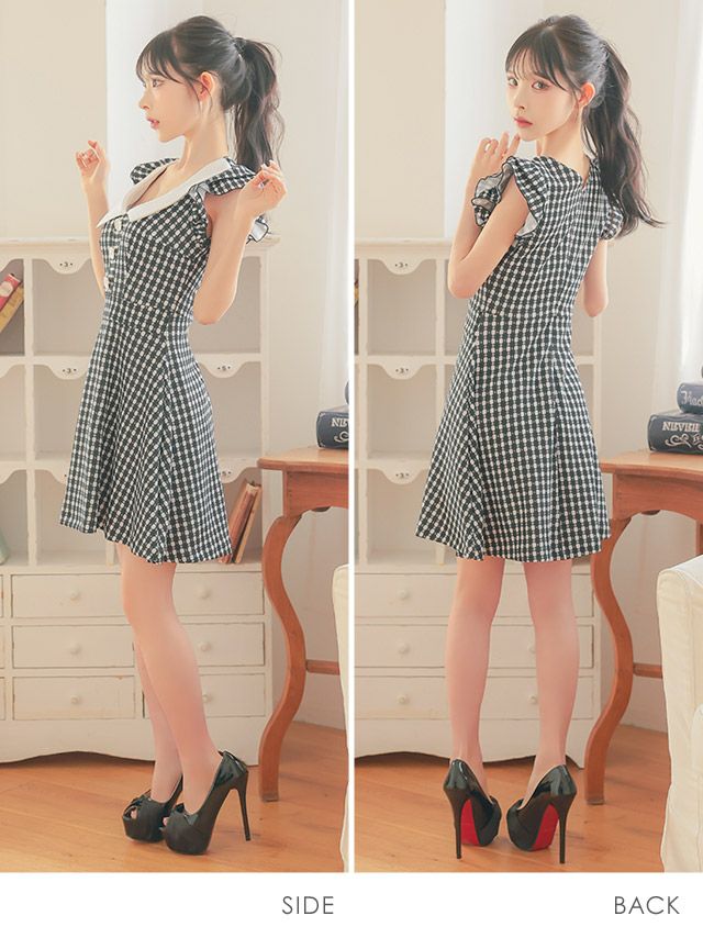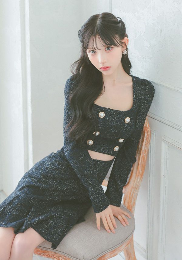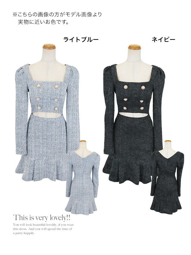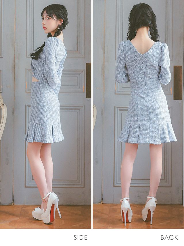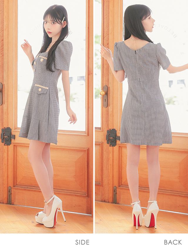 韓国ドレスのデザインは幅広く、セットアップドレスから、一般的なミニドレスや主流にもなりつつある、ミディ丈ドレスなどをご用意しております。
