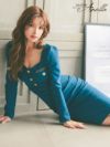 3. [韓国ドレス] タイト膝丈ドレス 長袖 ワンカラー ゴールドボタン チェーン ペンタゴンネック 大人 (Sサイズ~Lサイズ) (ゆんころ着用) [Anella]