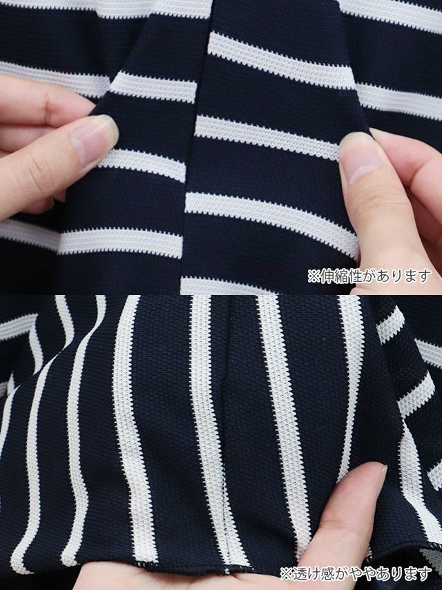 襟デザインボーダーノースリーブフリルフレアミニドレスのカラーバリエーション