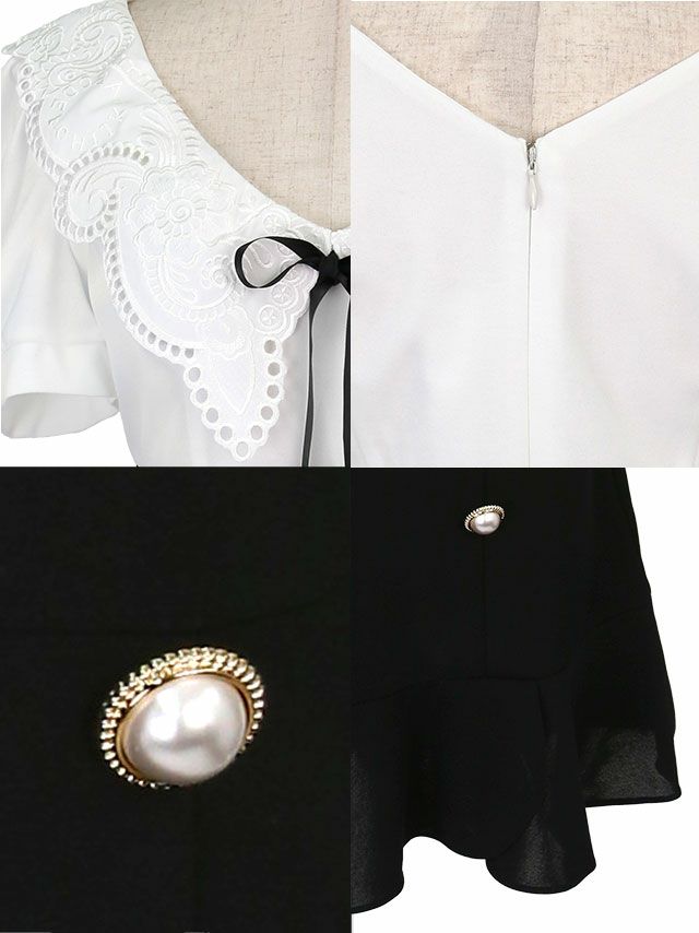 作り込まれた刺繍のホワイトの襟とリボンが