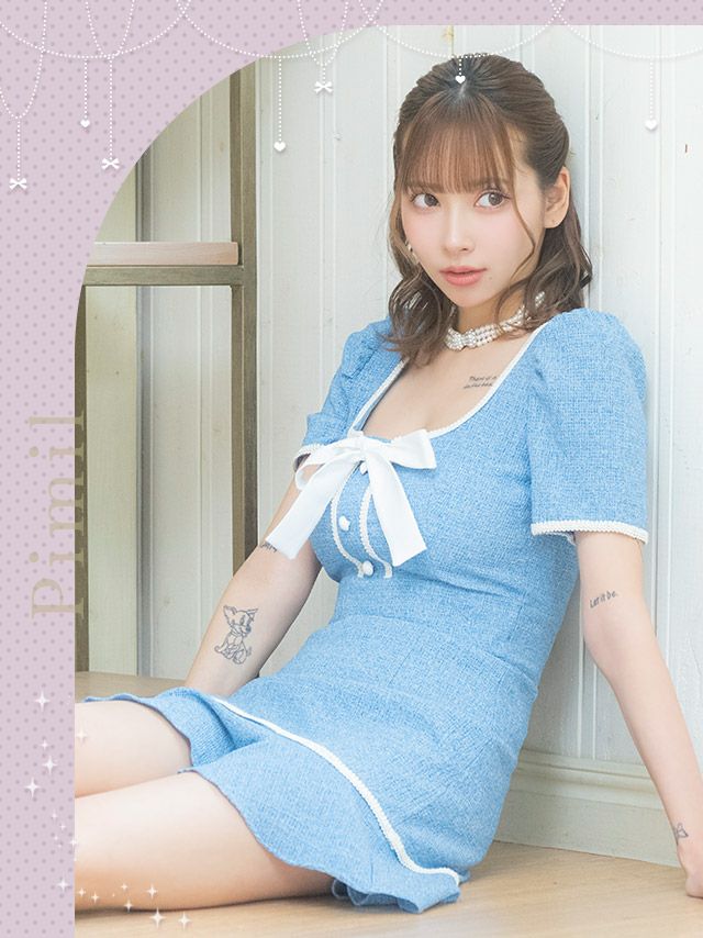 3. ネックリボンミニドレス