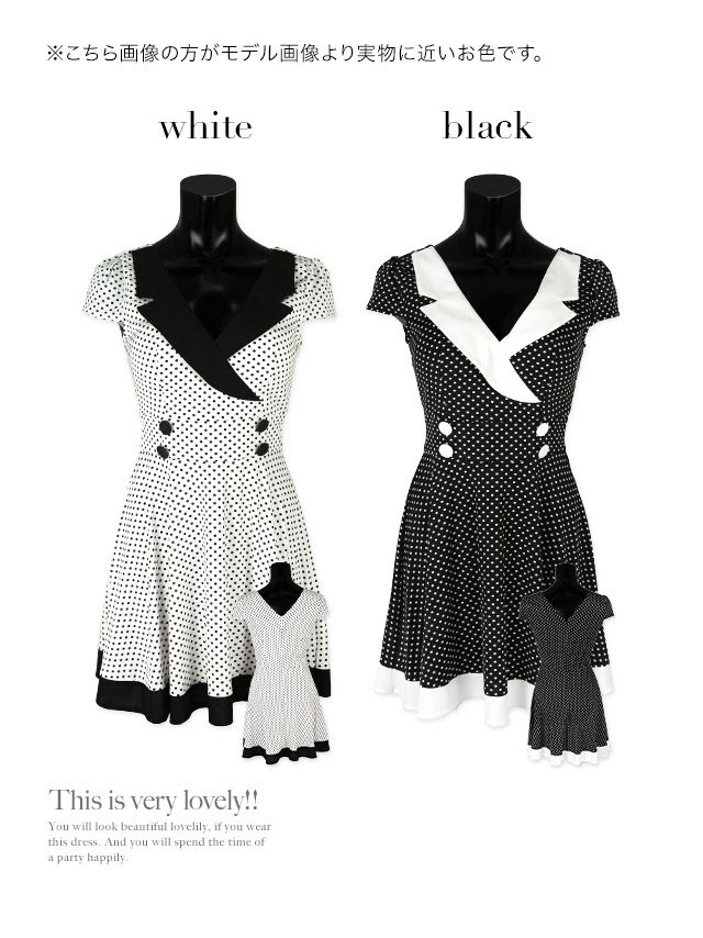 キャバドレス 韓国 襟付き カシュクール ドット レトロ フレア ミニドレス ホワイト ブラック S~Lサイズ 韓国ドレス キャバ ドレス aライン 大きいサイズ ミニ 膝丈 キャバワンピ 私服 シンプル ワンピース 白 黒 通販