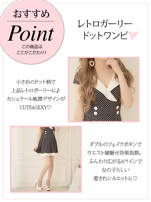 韓国ドレス 襟付きカシュクールドットレトロフレアミニドレスの商品特徴