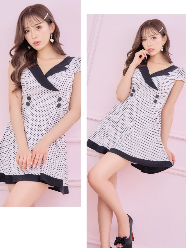 3. [韓国ドレス] 襟付き カシュクール ドット柄 半袖 フレアミニドレス (Sサイズ~Lサイズ) (黒崎みさ/キャバドレス着用) [TikaPimil]