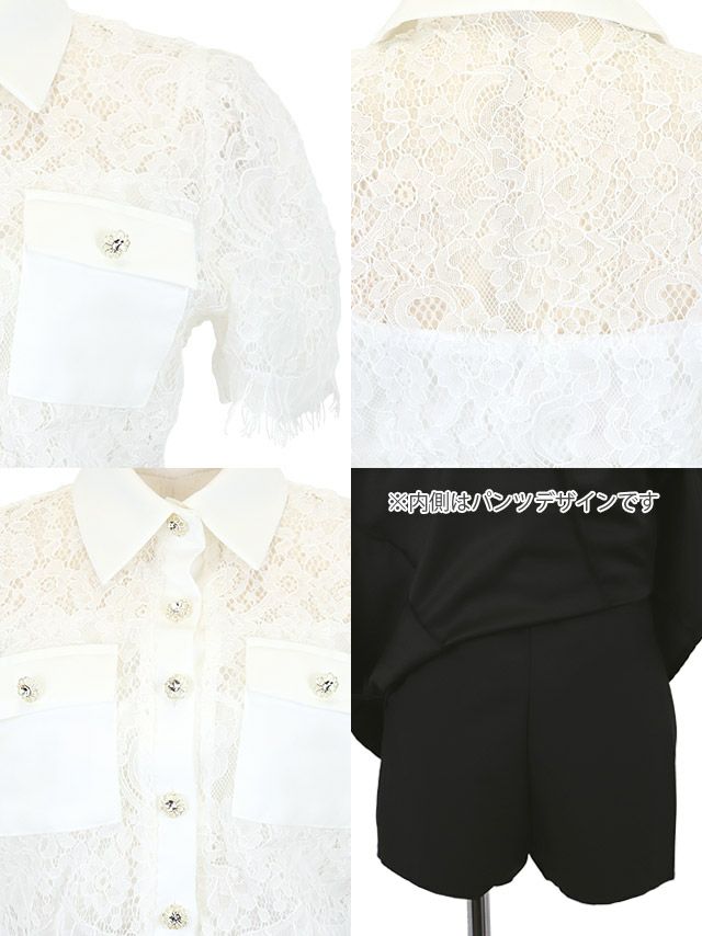 [韓国ドレス] 袖あり 襟付き スカラップレース シャツ セットアップ フレアミニドレス (Sサイズ/Mサイズ) (緩苺/キャバドレス着用) [TikaPimil]