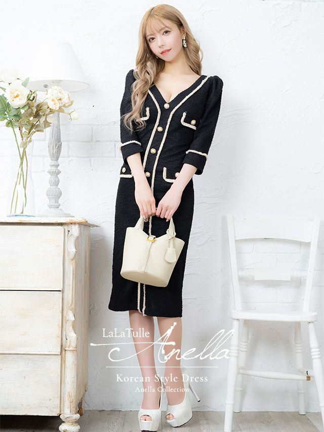 他の画像を見る 落ち着きのあるガーリースタイルに♪ [韓国ドレス] ミニドレス ワンピース 異素材 モノトーン 袖あり 七分袖 ツイード Aライン キャバドレス (ゆんころ着用) [tk-mdkwt-2077b] ¥ 11,000 税込 詳細を見る お気に入りに追加