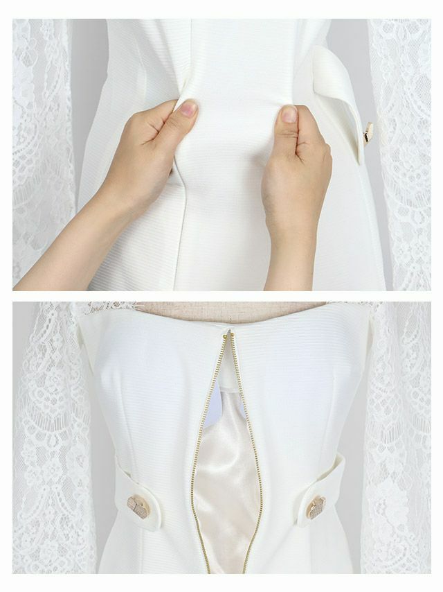 4. [SALE] [韓国ドレス] タイト膝丈ドレス 長袖 袖あり フロントジップ レース (Sサイズ~Lサイズ) (一条響着用) [Anella]