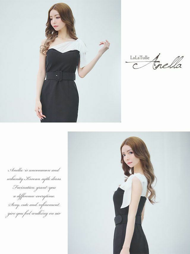 4. [韓国ドレス] タイト膝丈ドレス ワンショルダー ウエストベルト 大人 (Sサイズ~Lサイズ) (森咲智美着用) [Anella]