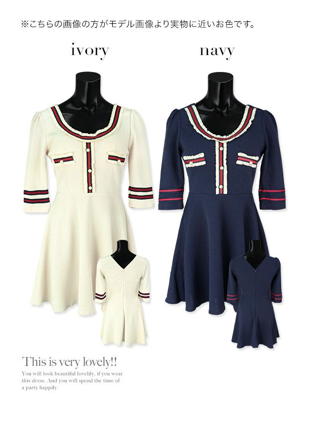 韓国ドレス 韓国ドレス 異素材ラインデザインフレアミニドレスのスペック表