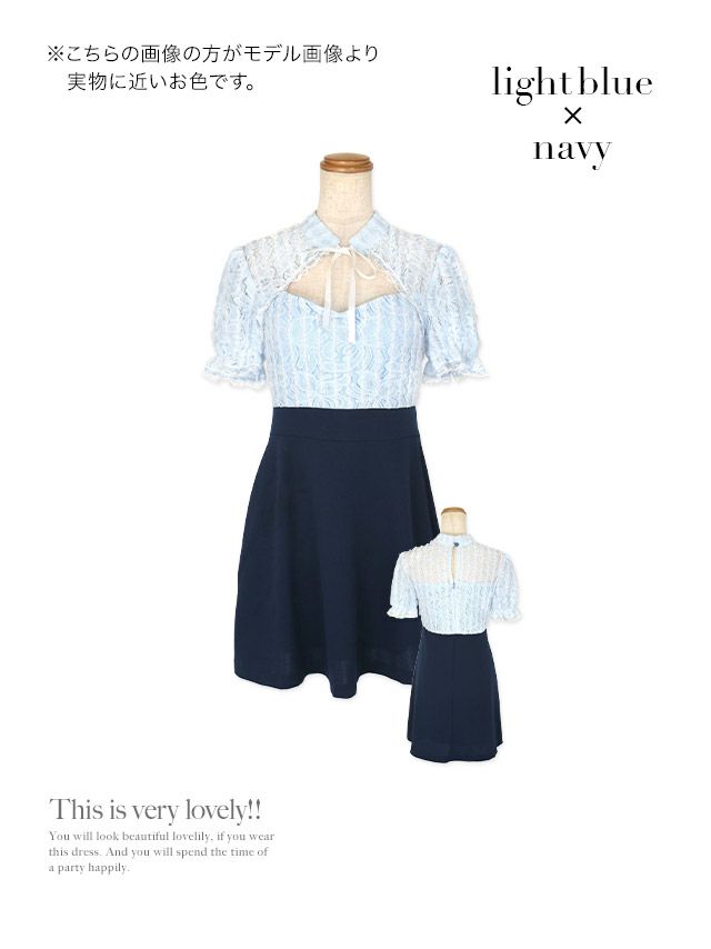 半袖ふわふわレースネックリボンハイウエスト切替フレアガーリースタイルミニドレスのカラーバリエーション