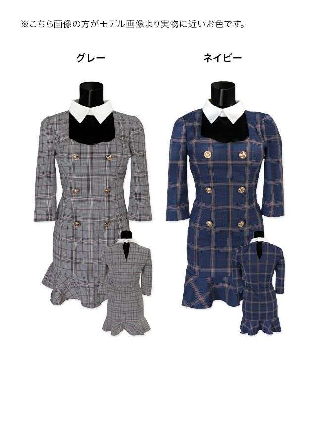 [韓国ドレス] チェック柄 スクエアネック バストカット 袖あり 七分袖 襟付き 谷間魅せ タイトミニ キャバドレスのカラーバリエーション