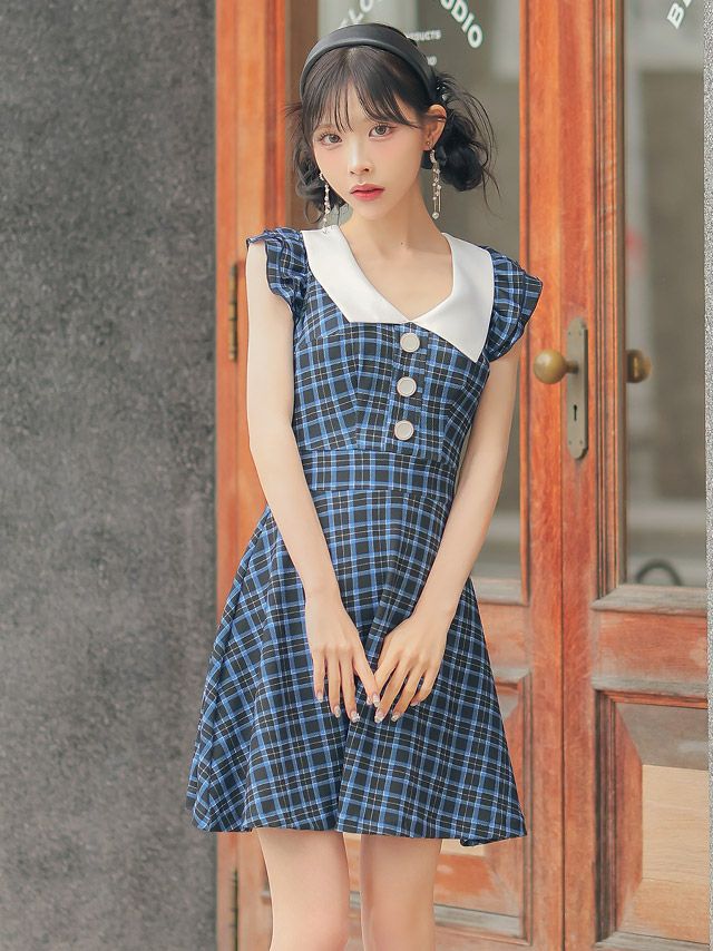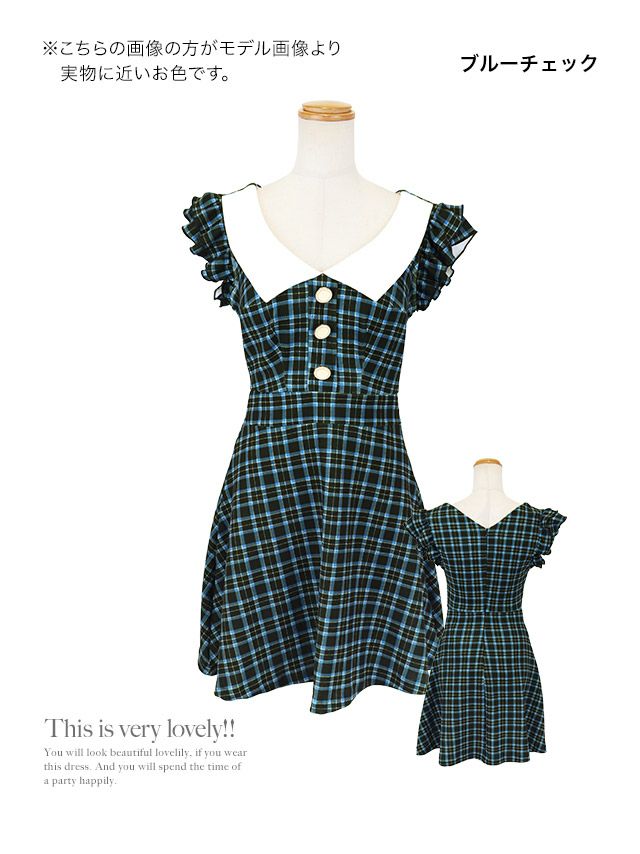 他の画像を見る 鮮やかブルーで華やかに♪ [韓国ドレス] 襟付き ノースリーブ フリル袖 チェック柄 フレアミニドレス (Sサイズ~Lサイズ) (緩苺/キャバドレス着用) [TikaPimil] ¥ 16,280 税込 詳細を見る お気に入りに追加