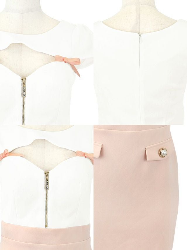 5. [韓国ドレス] ミニドレス 谷間 ストレッチ 半袖 バストカット ジップ リボン バイカラー タイト キャバドレス (黒崎みさ着用) [tk-mdk43]