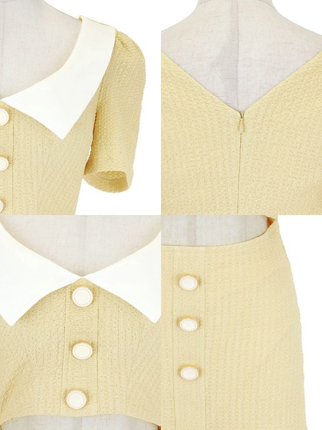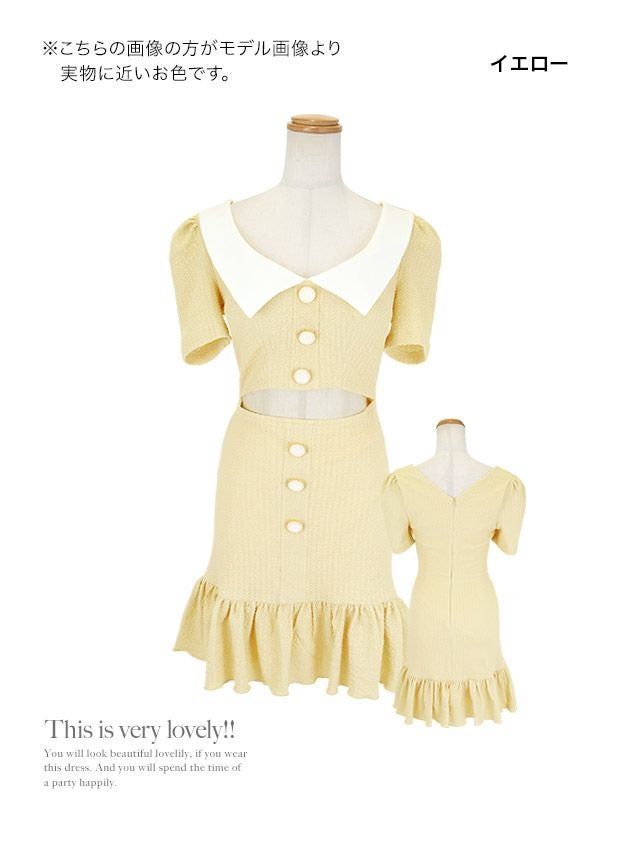 韓国ドレス ミニドレス 襟付き 半袖 ボタン ウエストカット ワッフル 裾フリル タイトキャバドレスのディティール1 韓国ドレス ミニドレス 襟付き 半袖 ボタン ウエストカット ワッフル 裾フリル タイトキャバドレスのディティール2