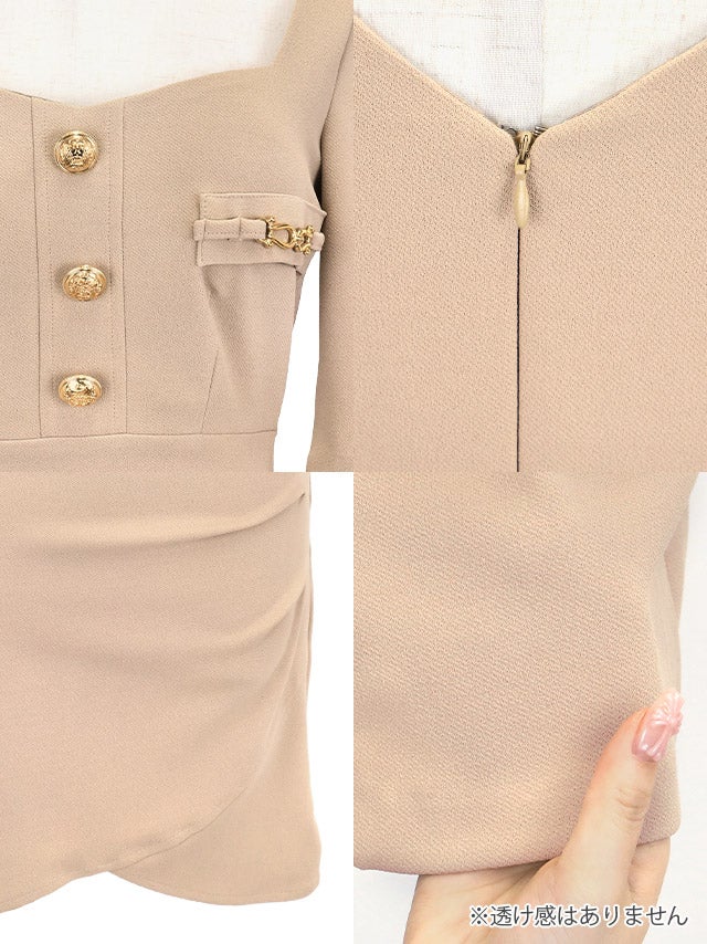 4. [韓国ドレス] ミニドレス タイト 袖あり パフスリーブ スクエアネック ゴールドチェーン フロントボタン ストレッチ ラップ モカベージュ キャバドレス (uka着用) [tk-mdk7062]
