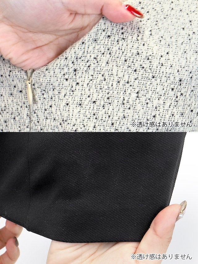 ミニドレス タイト 長袖 ゴールドボタン ウエストカット ストレッチ ツイード調 パイピング モノトーン 白 黒 キャバドレスのスペック表