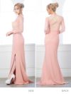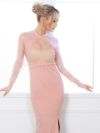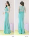 長袖シアーバストカットレース切り替えサイドスリットストレッチタイトロングドレスのイメージ画像2