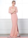 長袖シアーバストカットレース切り替えサイドスリットストレッチタイトロングドレスのフロント全身