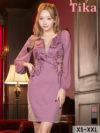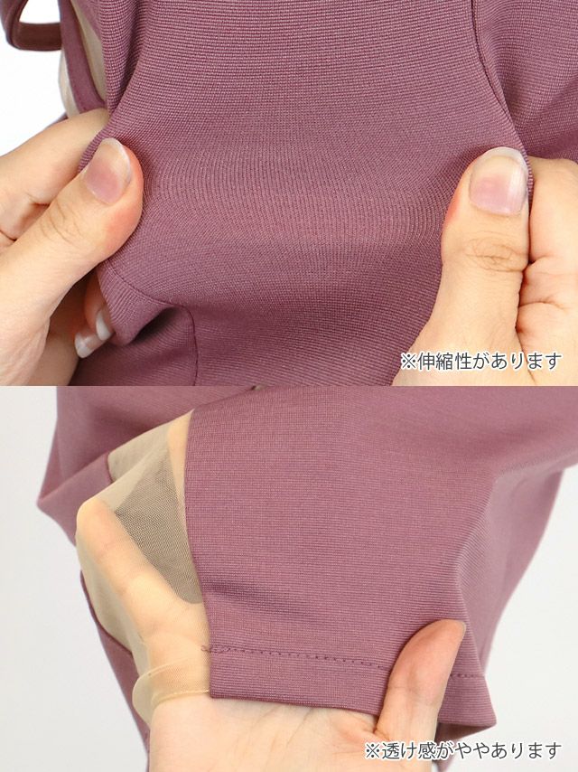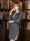 5. タイト ミニドレス 長袖 谷間 大きいサイズ ストレッチ ビジュー シアースリーブ フラワー刺繍 くびれ透け 編み上げ (浦西ひかる着用)