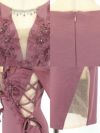 3. タイト ミニドレス 長袖 谷間 大きいサイズ ストレッチ ビジュー シアースリーブ フラワー刺繍 くびれ透け 編み上げ (浦西ひかる着用)