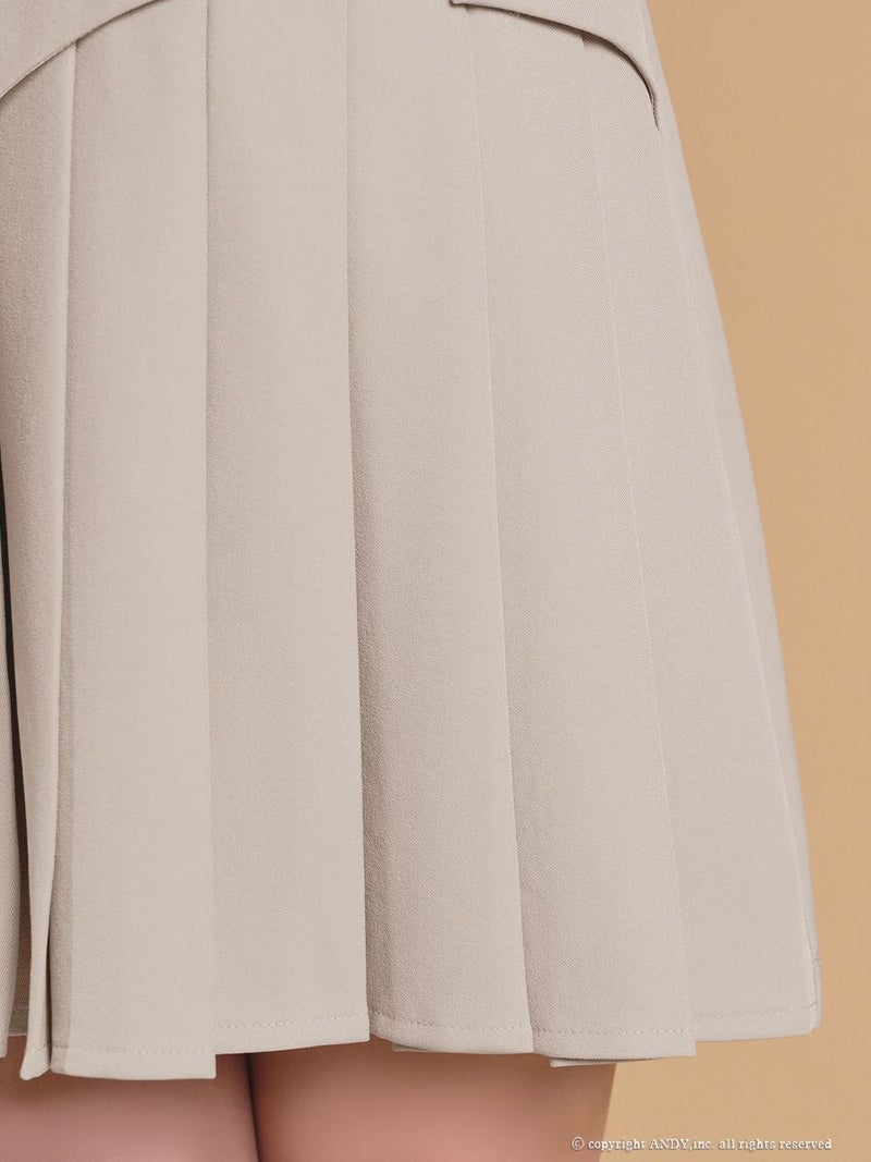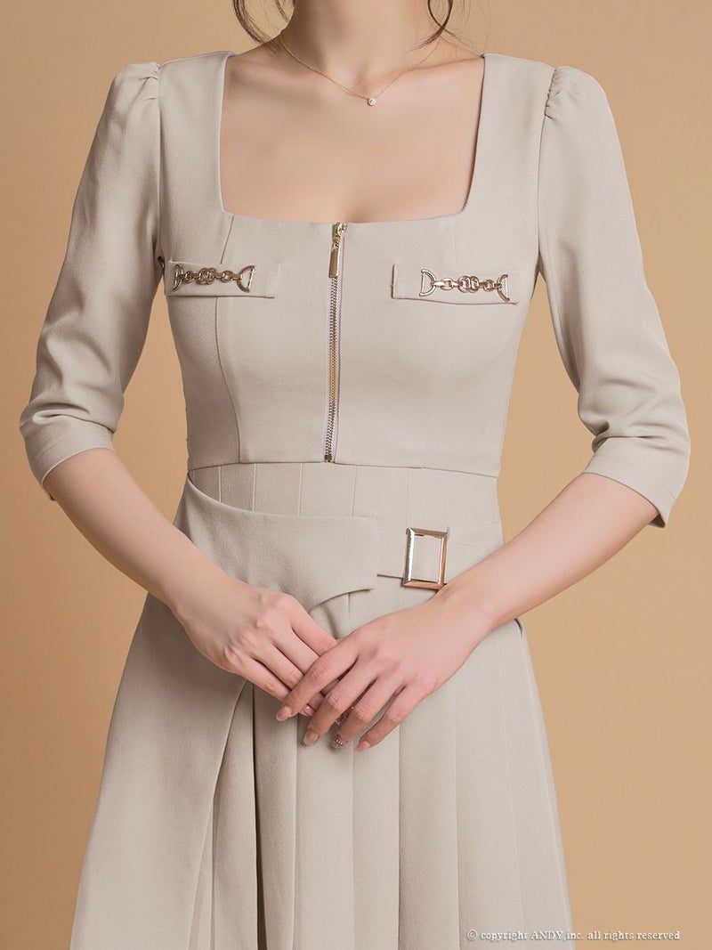 脚を美しく魅せスタイルUP♡ [an/アン] 高級 ブランド ワンピース Aラインミニドレス シンプル 袖あり 五部袖 ウエストベルト ジップ ブラジャーのまま スクエアネック プリーツ