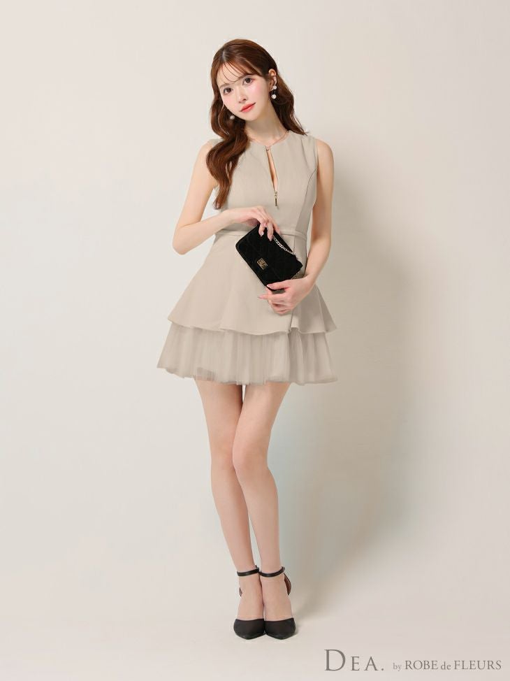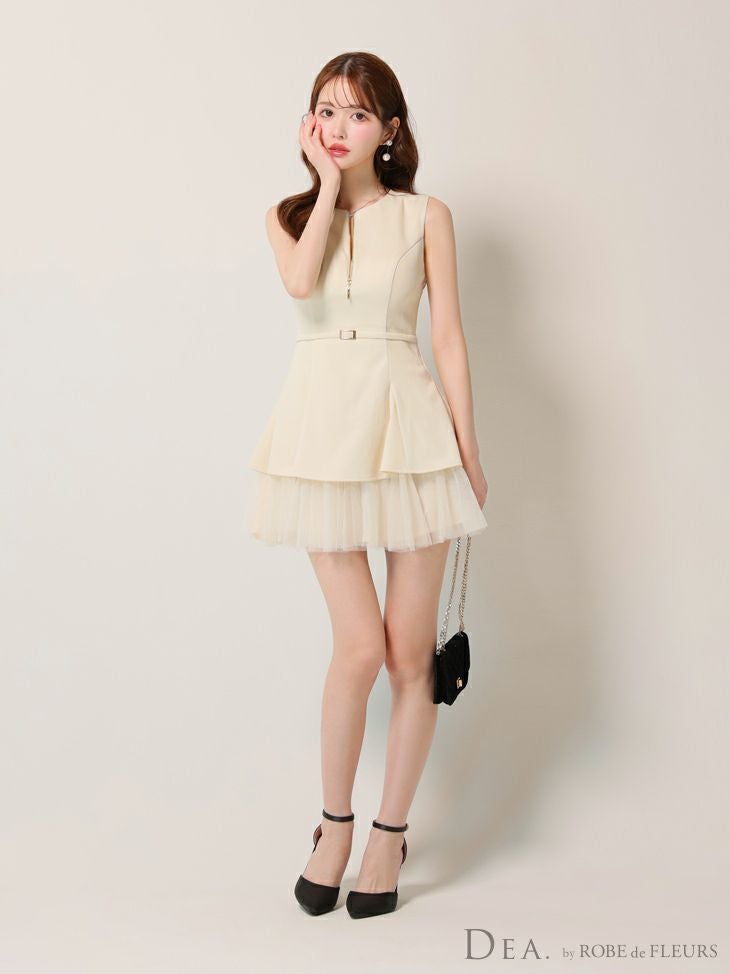 5. 予約商品【5月下旬入荷予定】[DEA.byROBEdeFLEURS/ディアバイローブドフルール] 高級 ブランド Aラインミニドレス ノースリーブ ウエストベルト ジップ チュール