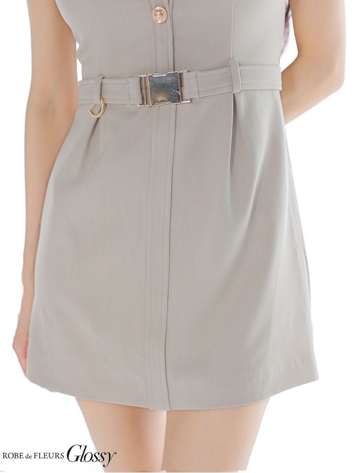 キャバドレス ミニドレス ROBEdeFLEURSGlossy ローブドフルールグロッシー 高級 ブランド  ワンピース タイトミニドレス 谷間 シンプル 半袖 ウエストベルト 襟付き ブラジャーのまま 同伴 Vネック ボタン