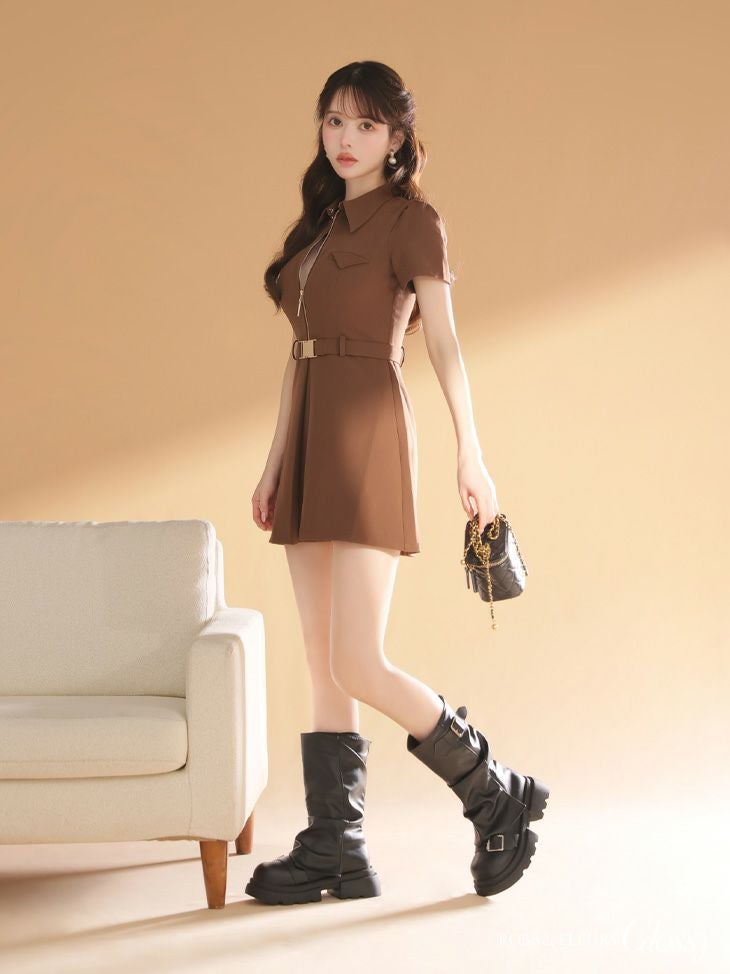4. ジップデザイン高級ミニドレス