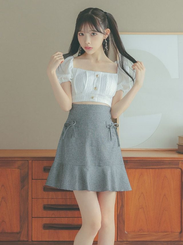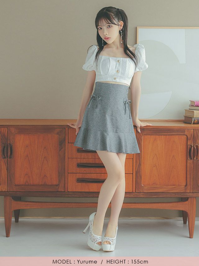 スカートのさりげないリボンが