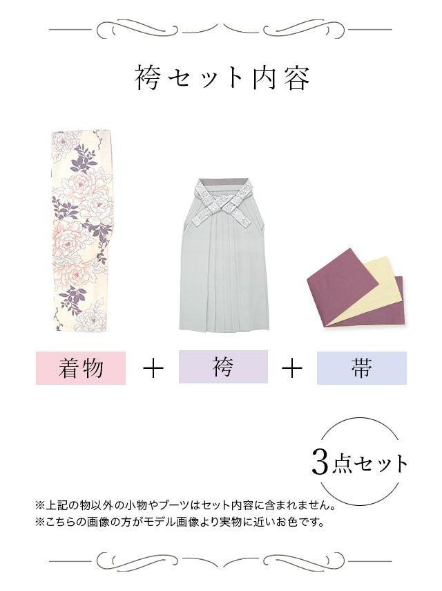 二尺袖着物+袴+袴下帯の3点セット☆