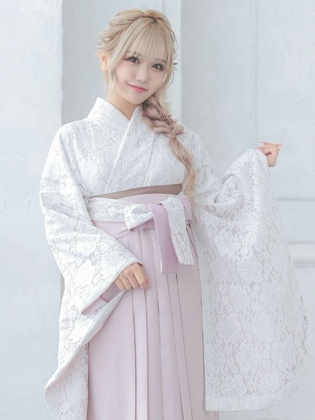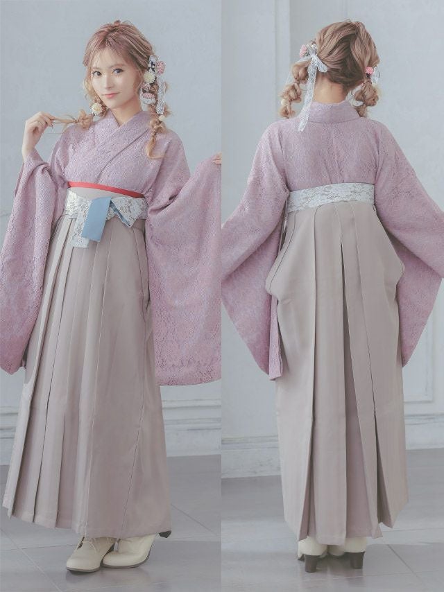 袴はベーシックな単色にレースがワンポイントで飾られた