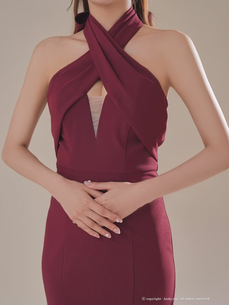 5. [AndyGLAMOROUS/アンディグラマラス] 高級 タイト ロングドレス 谷間 大人 マーメイド ホルターネック