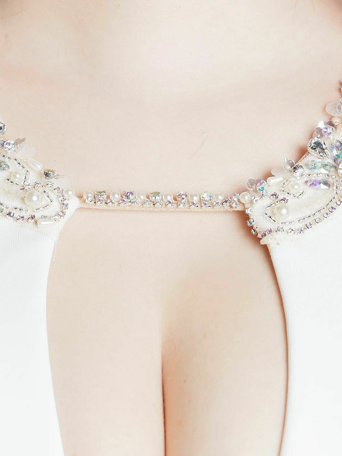 他の画像を見る ヘルシーな肌見せで差をつける☆ [Angel-R/エンジェルアール] 高級 ホルターネック クロスビジュー パール セットアップ バストカット 谷間魅せ フレアミニドレス ¥ 32,780 税込 お気に入りに登録する
