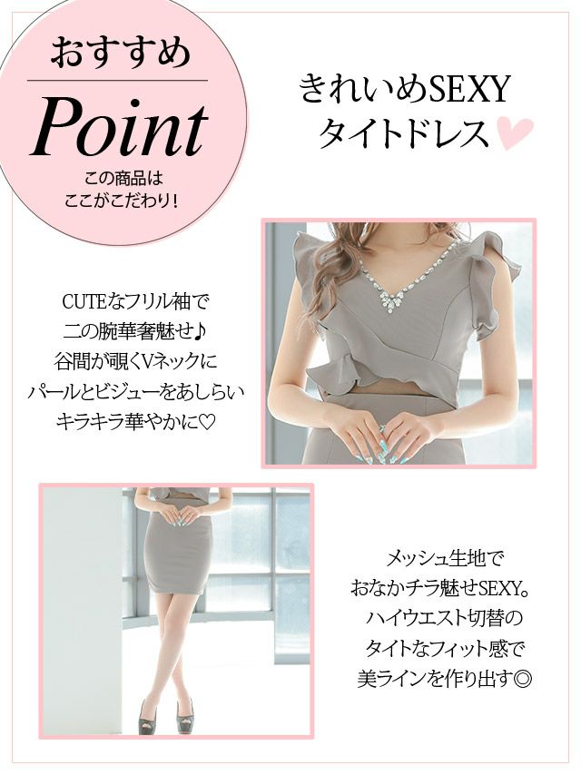 着るだけで細見え効果抜群♪ ウエストシースルーフリル袖ウエストカットワンカラータイトミニドレス (Sサイズ~Lサイズ) (さくりな/キャバドレス着用)