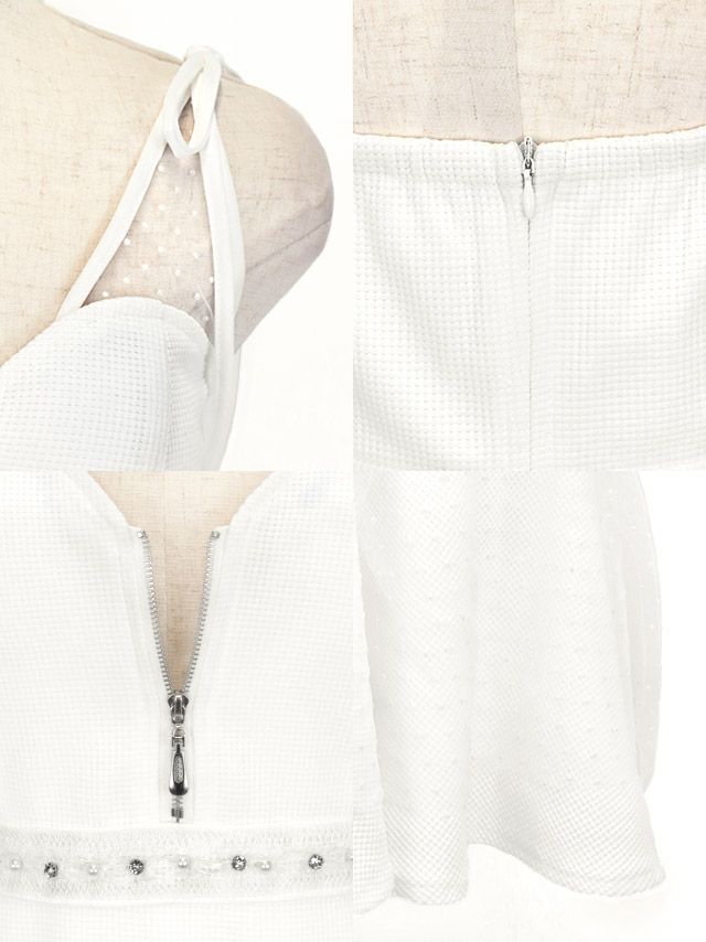 ショルダーリボンキャミソールバストジップウエストストーンドットチュールフレアミニドレスの商品詳細1