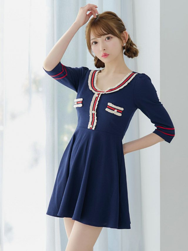3. ネイビー ミニドレス