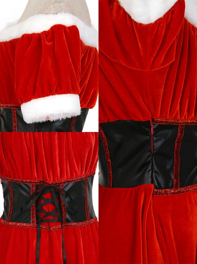 サンタコス 2点set 2WayオフショルウエストレースアップAラインベロアクリスマスガーリーサンタコスプレイメージ画像4