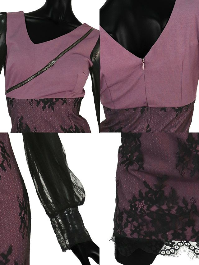 シアー長袖バストシッパーウエス切替フラワーレースタイトミニドレスの商品詳細1