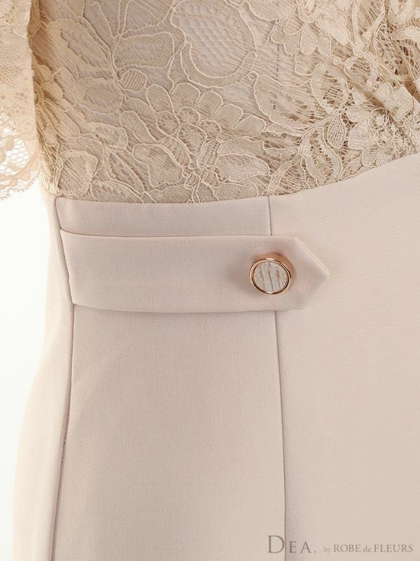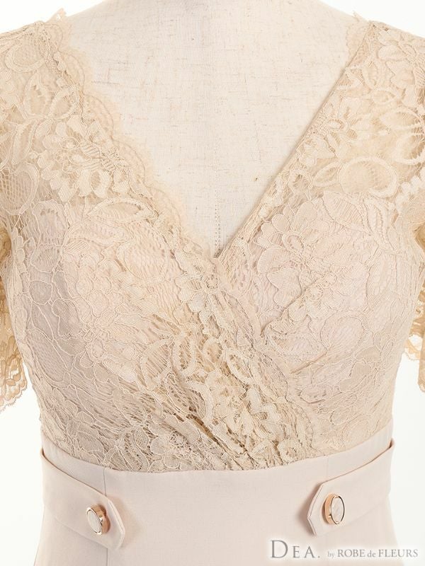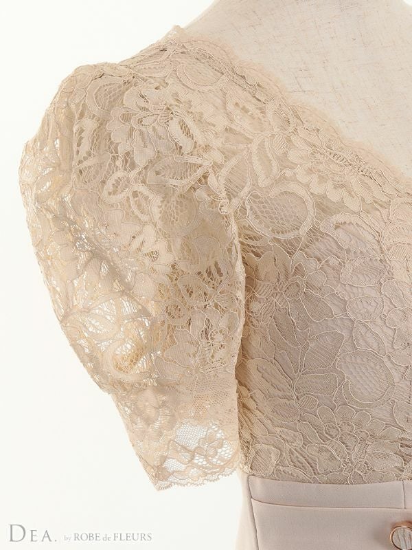 上品なレース使いがエレガントな1着☆ [DEA.byROBEdeFLEURS/ディアバイローブドフルール] 高級半袖フラワーレースハイウエスト切替膝丈タイトドレス