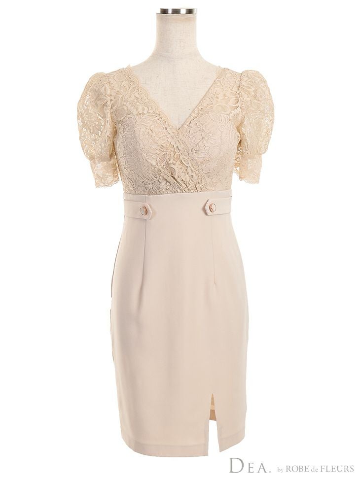 5. [DEA.byROBEdeFLEURS/ディアバイローブドフルール] 高級半袖フラワーレースハイウエスト切替膝丈タイトドレス