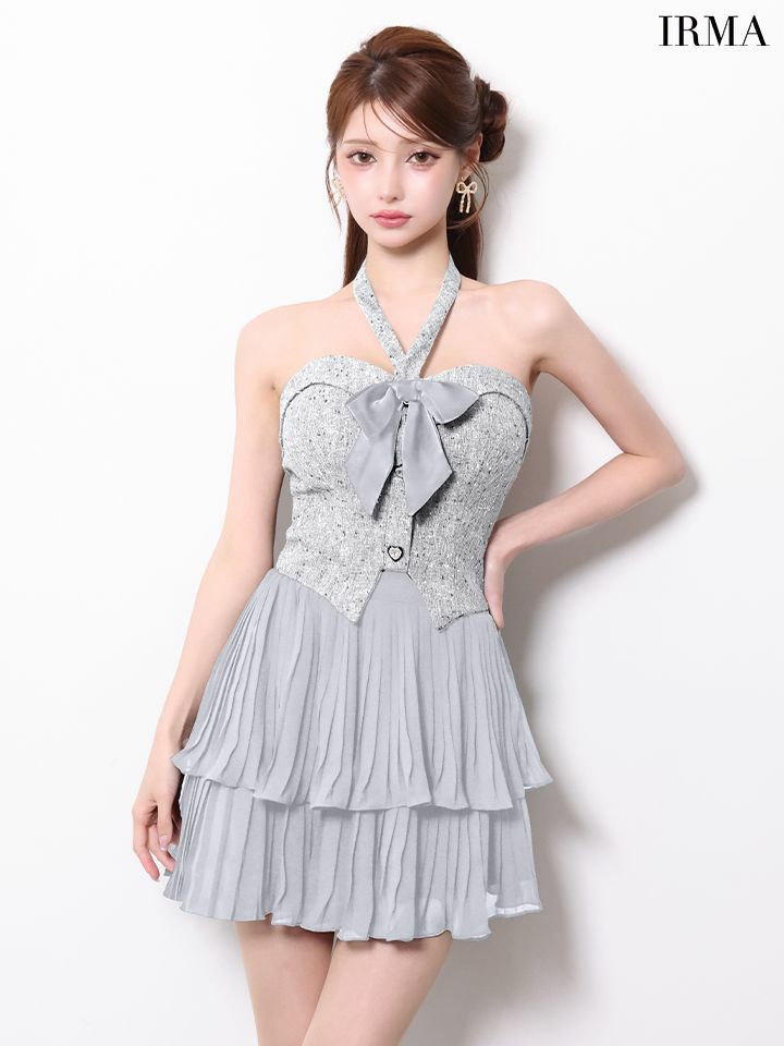 他の画像を見る 大人の可愛さと色気を両立♡ [IRMA/イルマ] 高級 ブランド Aラインミニドレス 谷間 セットアップ 2way ホルターネック ベア リボン ツイード シフォン ¥ 30,580 税込 お気に入りに追加