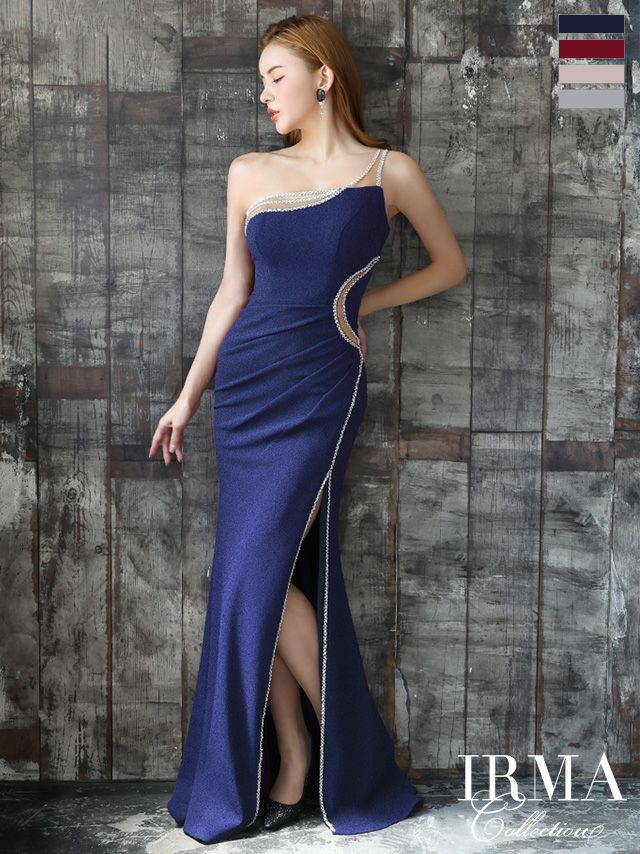 4. [IRMA/イルマ] 高級 バースデーラメニットサイドビジューワンショルダータイトロングドレス